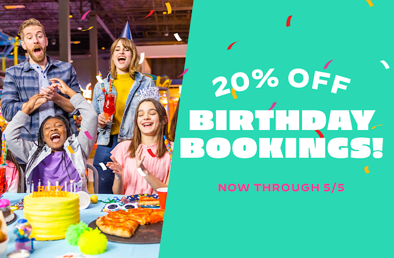 For 72 hours only — get 20% OFF your next birthday booking! Call the sales team at your local Main Event and mention code BDAY4U to book today!